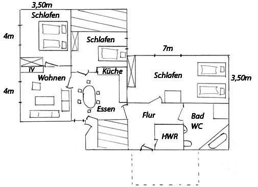 - diese ist mit ca. 80 m² die größte Ferienwohnung