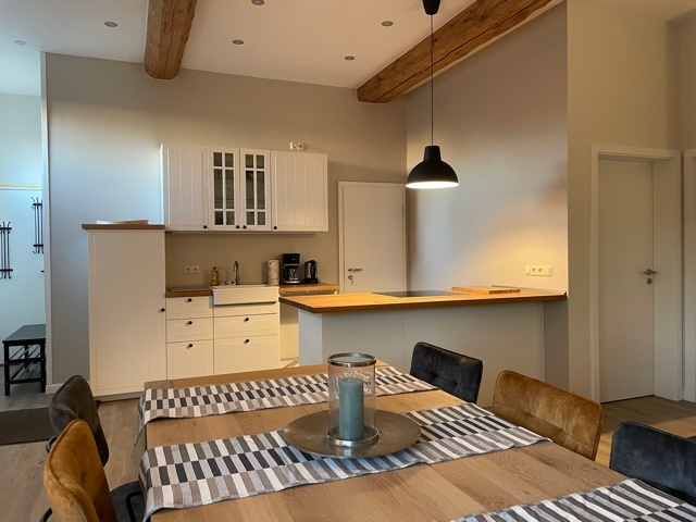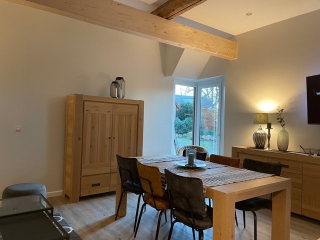 Unsere „Alte Diele“ ist ganz neu in unserem Bauernhaus auf der Giebelseite im November 2021 entstanden. Hinter dem neuen Fachwerk finden Sie eine großzügige Wohnküche inkl. einer bequemen Schlafcouch, einer Küche mit einer großzügigen Kochinsel und allen Küchenutensilien für einen unbeschwerten Aufenthalt. Der wunderbar gesellige Esstisch lädt die ganze Familie zum Verweilen ein. Dazu gibt es ein Schlafzimmer mit Doppelbett und ein Badezimmer mit offener Dusche.