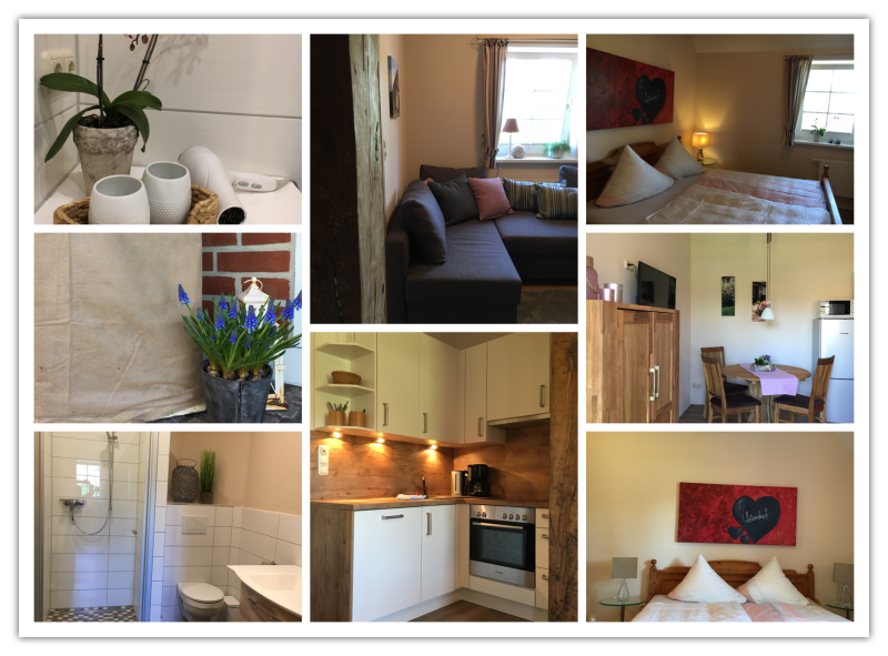 Je nach Personenzahl oder Vorlieben können Sie zwischen den Ferienwohnungen ‚Lütthus EG’, ‚Lütthus OG’ und der im Haupthaus befindlichen Ferienwohnung ‚Knechtekammer’ sowie eins von drei möglichen Apartments wählen.